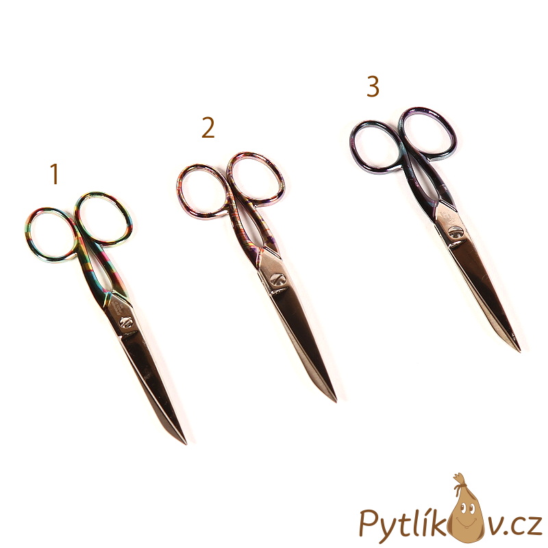 Kvalitní nůžky na papír nebo do kuchyně z prvotřídní oceli s lakovanými rukojeťmi, délka nůžek 15 cm (6"). Součástí balení jsou i plastová kapsa na uložení nůžek. Tři barevné varianty rukojetí.