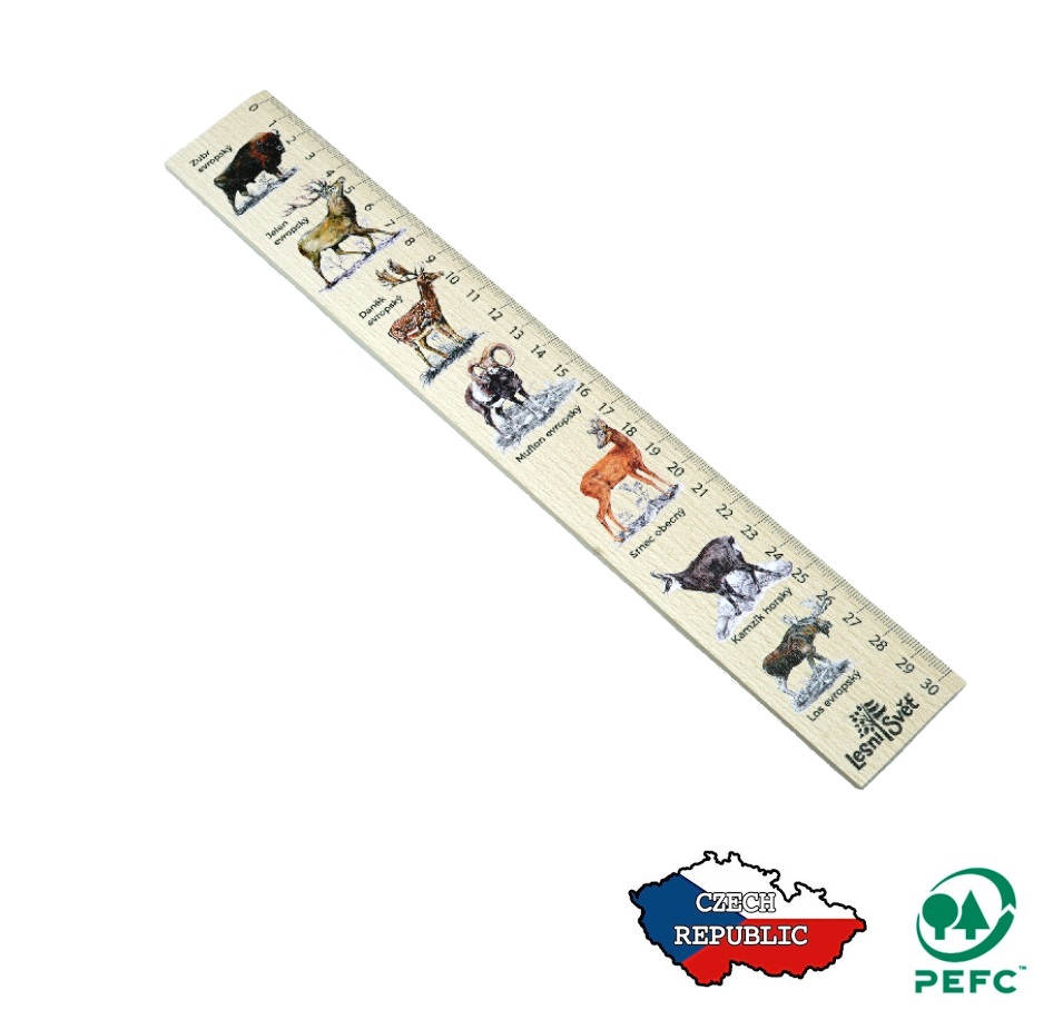 Dřevěné ilustrované pravítko s měřítkem 30 cm vám pomůže s měřením, rýsováním i prvoukou. Český výrobce Lesní svět. Vyrobeno z ekologicky certifikovaného dřeva. Vybírat můžete z řady motivů z našich luhů vod a strání. Kód výrobce: 5023-01.