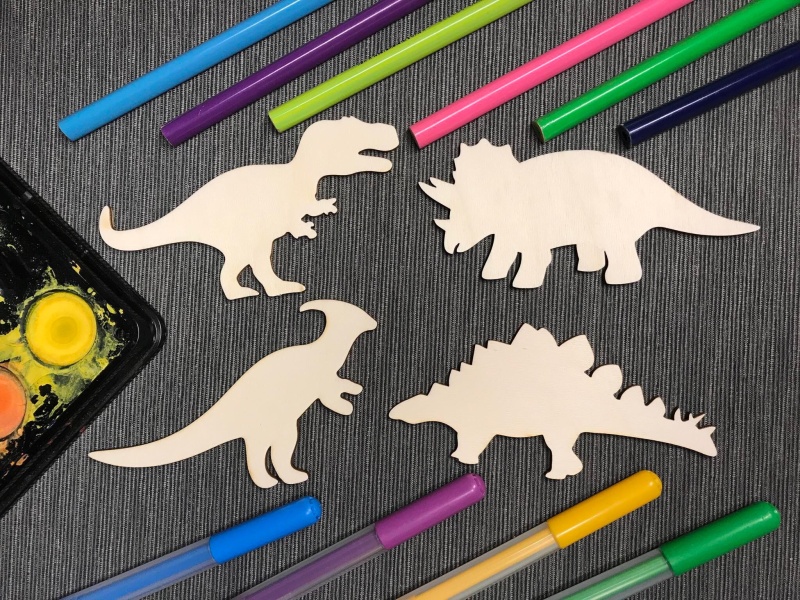 Dřevěná sada s dinosaury. Dekorace k dalšímu tvoření.
