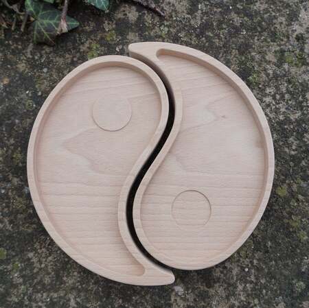 Originální dřevěný tácek od českého výrobce Dřevokaz. Nádherná, dřevěná dekorace na stůl s motivem Jin a jang z buku, dřevo s impregnací. Ručně vyrobená dvojdílná miska na stůl.