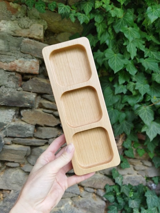 Originální dřevěný tácek od českého výrobce Dřevokaz. Ručně vyrobená dřevěná miska na stůl. Dřevěná dekorace do bytu na stůl nebo na klíče Malý třídící tácek, dřevo buk s impregnací Osmo.