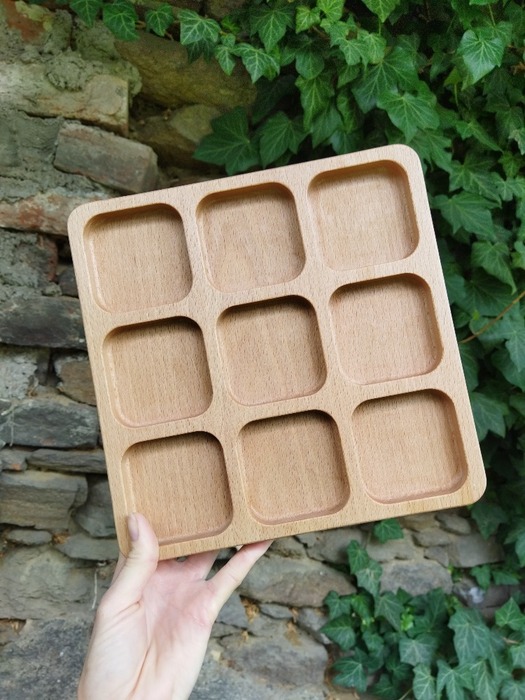 Dřevěná dekorace na stůl z buku Dřevokaz Třídící tácek velký 23 x 23 cm - s impregnací - vyrobeno v ČR