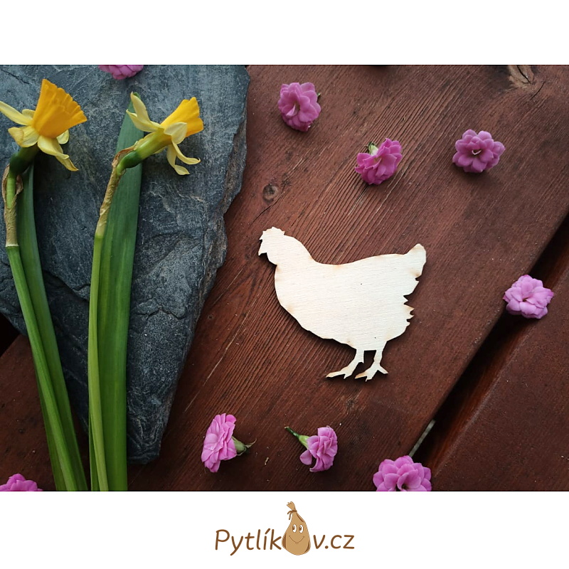 Originální dřevěný výřez ve tvaru slepičky od českého výrobce Dřevokaz. Malý dárek pro milovníka hospodářských zvířátek. Dekorace k dalšímu tvoření.
