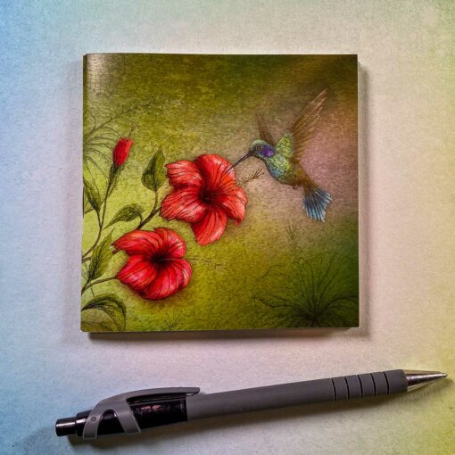 Nádherný zápisník s ilustrovanou obálkou od české výtvarnice Lucie Ernestové. Minibloček Duhová kočka Kolibřík je krásným dárkem pro kamarádku nebo pro Vás a hodí do kabelky nebo baťůžku na zaznamenání poznámek nebo náhlé inspirace.