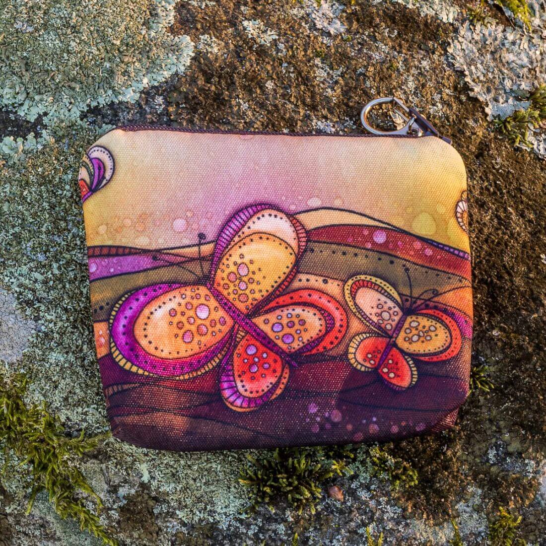 Peněženka pro děti na drobné mince s krásnou ilustrací, Peněženka s motýly, rozměry 12 × 10 cm