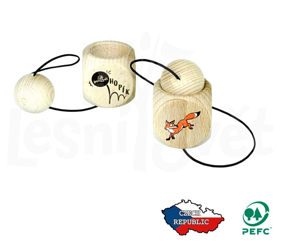 Ručně vyráběná dřevěná hra pro děti kalíšek s kuličkou Lesní svět - Hopík Liška - vyrobeno v ČR