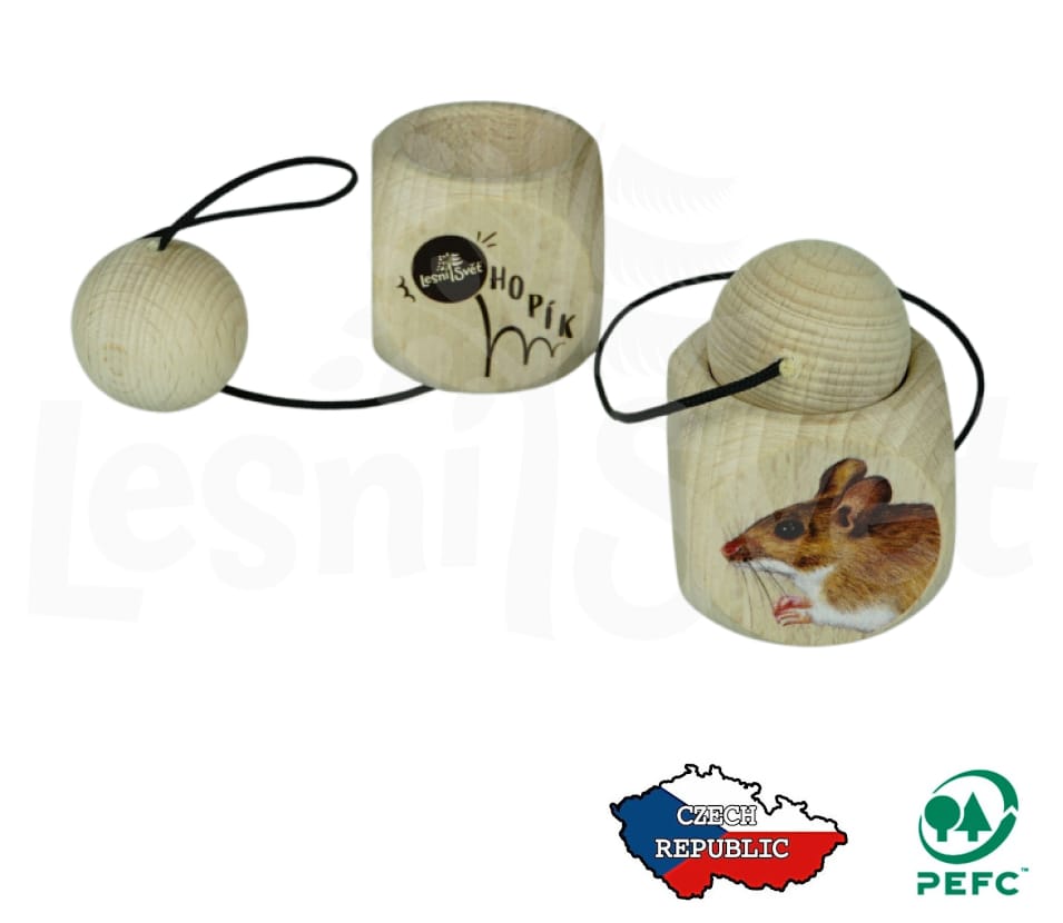 Ručně vyráběná dřevěná hra pro děti kalíšek s kuličkou Lesní svět - Hopík Myšice - vyrobeno v ČR