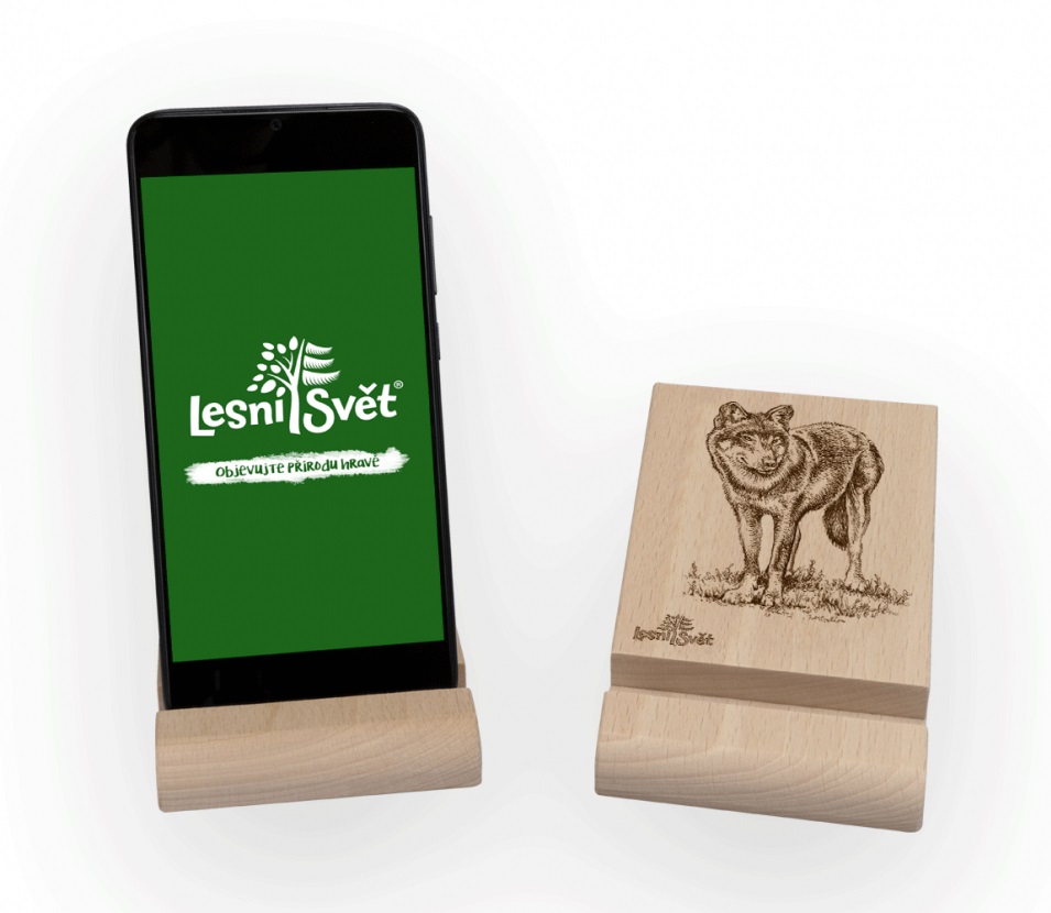 - Lesní svět Dřevěný stojánek na mobil a tablet L Vlk