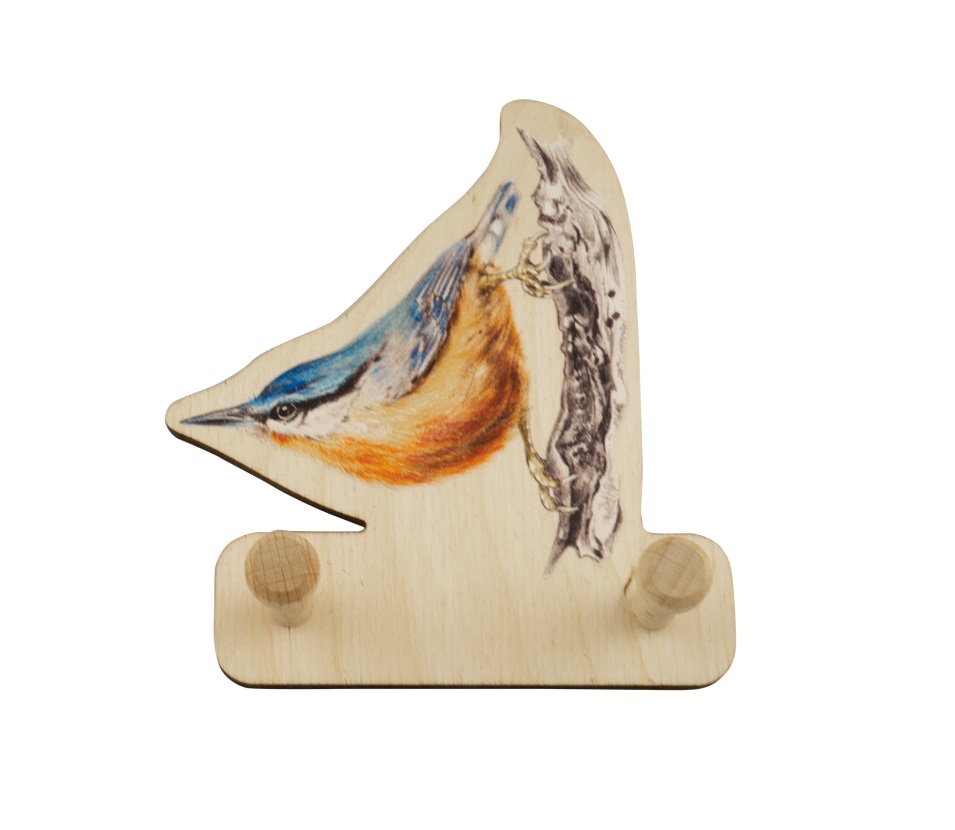 Ručně vyráběný dřevěný věšák pro děti Lesní svět Brhlík, velikost cca 10 cm - vyrobeno v ČR