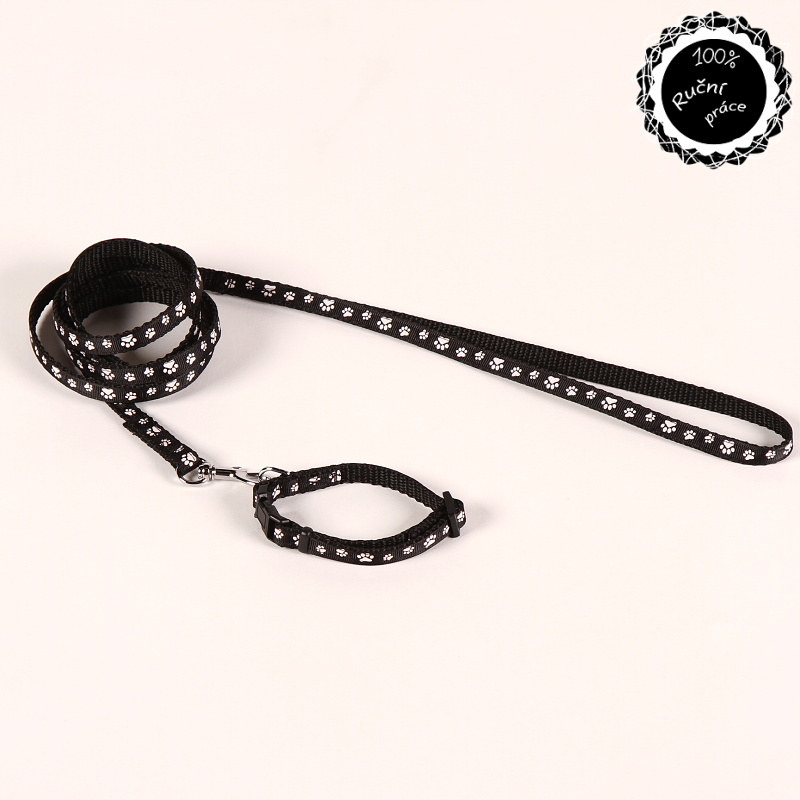 Jednoduchý lehký obojek s vodítkem pro pejsky. Velikostně vhodný pro toy plemena, jako je čivava, pražský krysařík, jorkšírský teriér, papillon, německý pinč malý a křížence toy plemen.