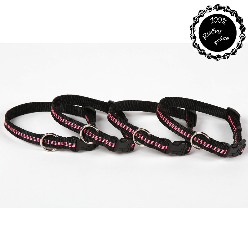 - Obojek pro psy růžové proužky XS - 16cm-21cm/15mm nylon Smarti fashion
