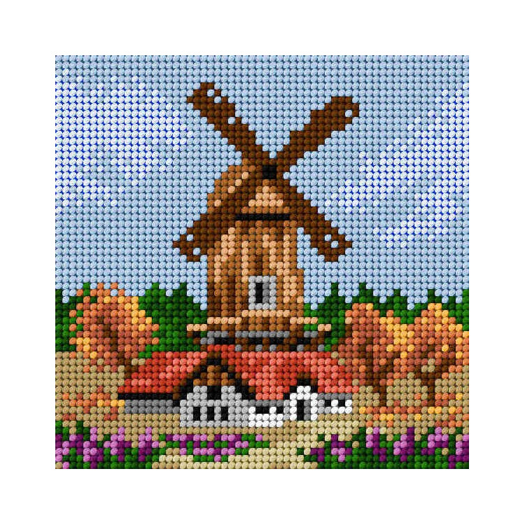 Gobelínové plátno (stramín) s natištěným obrázkem s motivem Mlýn na podzim. Kreativní předloha od výrobce Orchidea. Bavlněná vyšívací předloha s rozměry 15 x 15 cm. Kód výrobce: 2033.