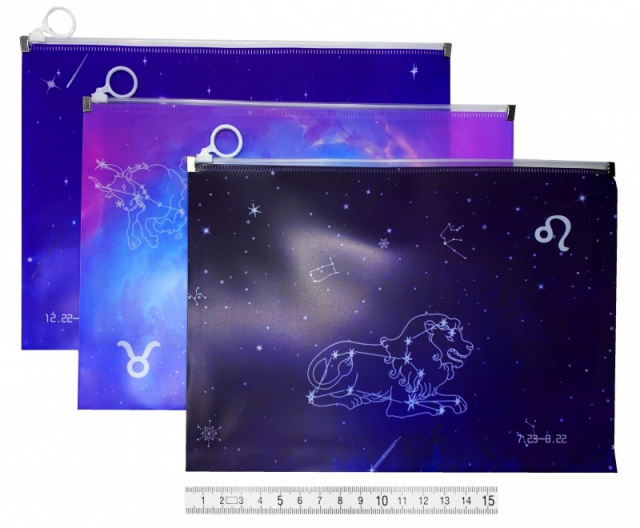 Plastová obálka se zipem ve znamení zvěrokruhu - formát A4, šíře 3 cm
