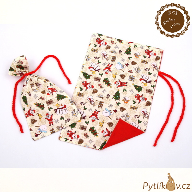 Plátěný pytlík na vánoční dárky a jiné příležitosti adventního času. Barevný plátěný sáček vhodný pro originální balení dárků nebo jako designový doplněk do bytu. Pytlíček je ručně šitý a vyrobený s láskou k tradici a poctivému zpracování. Vyrobeno v České republice.