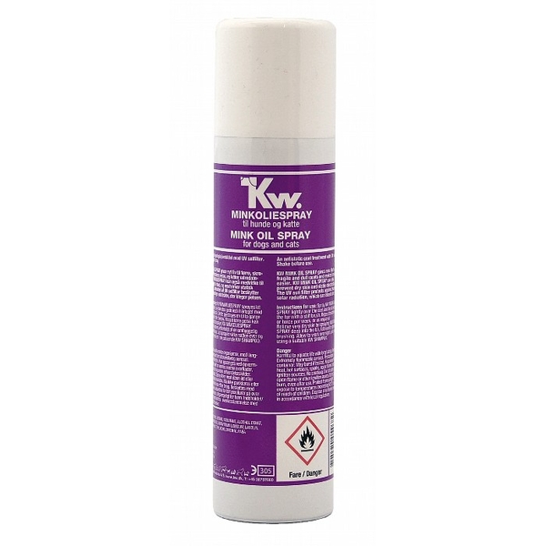 Kosmetika pro psy, péče o srst. KW antistatický sprej s norkovým olejem 220ml dodává pěkný, hluboký lesk matné srsti. Brání plstnatění, lépe se pak srst rozčesává, chrání před nepříznivým vlivem prostředí, pozitivně působí na suchou pokožku.