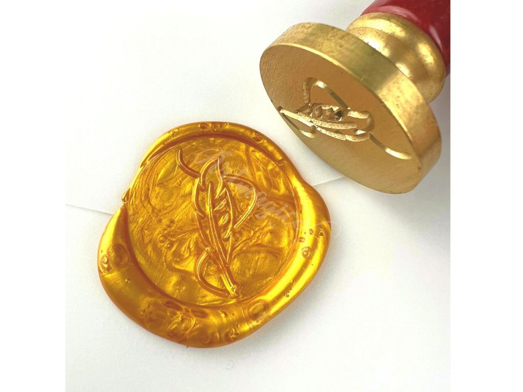 Pečetidla a pečetící vosky, scrapbooking sety - mosazné pečetidlo motiv Krasopiseckého pera