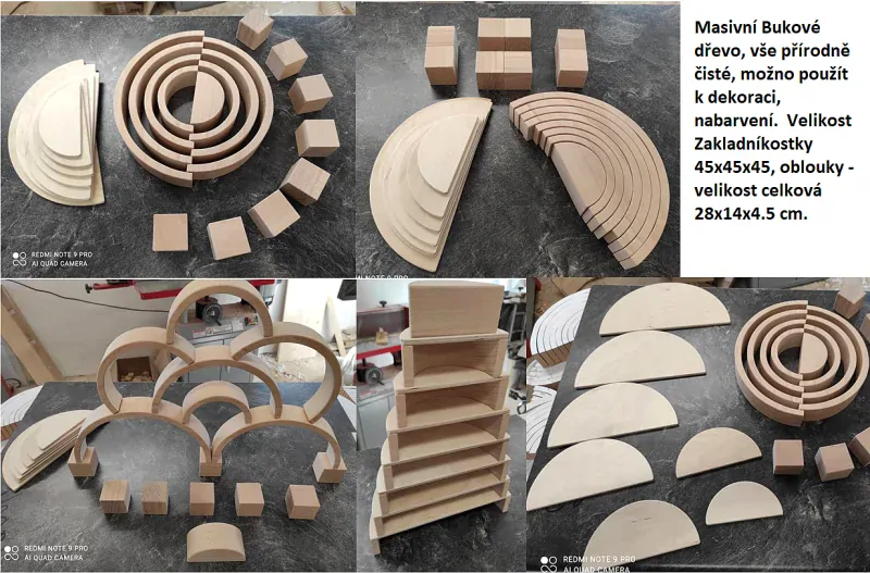 - Dřevěná sada oblouky + půlkruhy + kostky, provedení přírodní buk