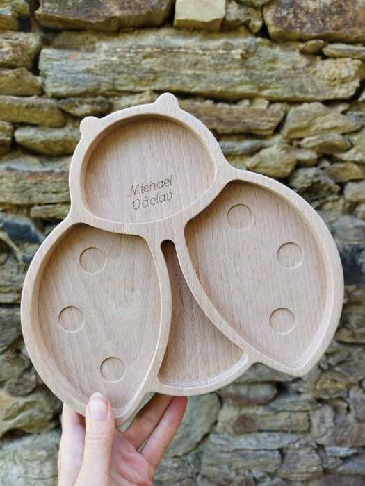 Dřevěná dekorace na stůl z buku Dřevokaz miska motiv Beruška - s impregnací - vyrobeno v ČR