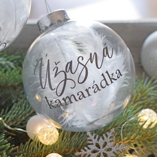 Dárková vánoční baňka Baňka s peřím - Úžasná kamarádka - originální výroba ČR