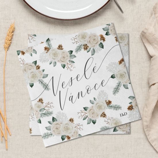 Originální kvalitní vánoční papírové ubrousky s českým textem - Veselé Vánoce 33 x 33 cm (20 ks)