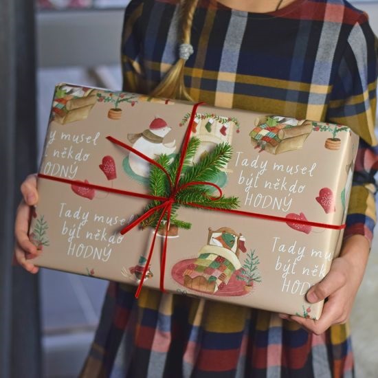 Originální kvalitní vánoční balící papír s českým textem - Tady musel být někdo hodný. 70 x 100 cm (1 role nebo 3 role)