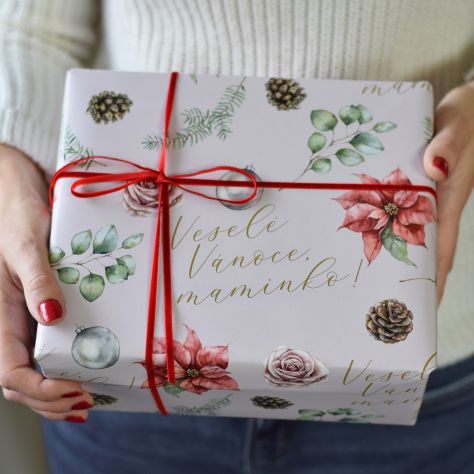 Originální kvalitní vánoční balící papír s českým textem - Veselé Vánoce, maminko! 70 x 100 cm (1 role nebo 3 role)