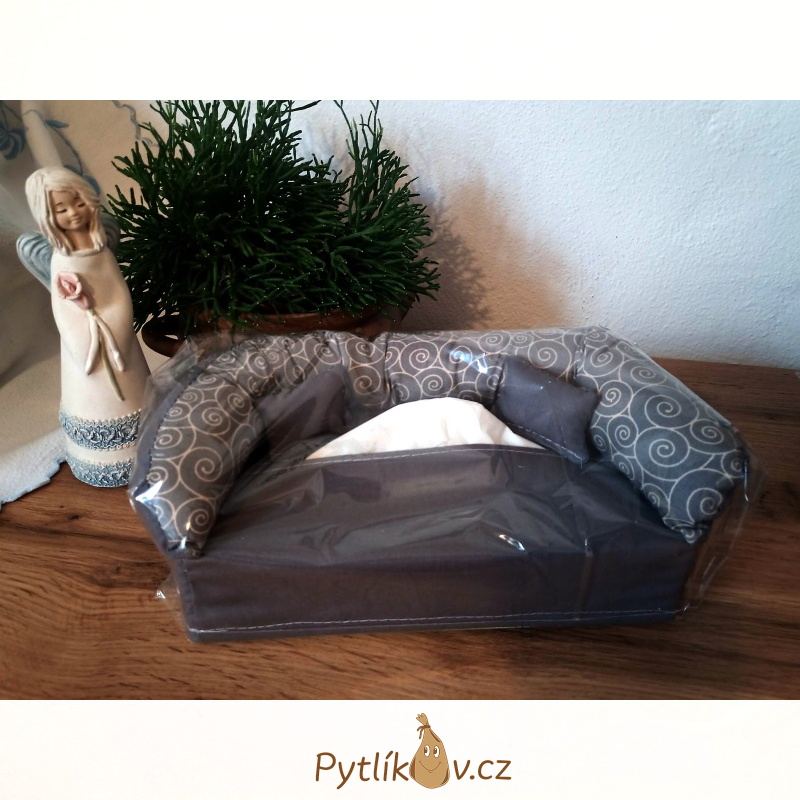- Kanape - látkový obal na hygienické kapesníčky - šedá spirálky