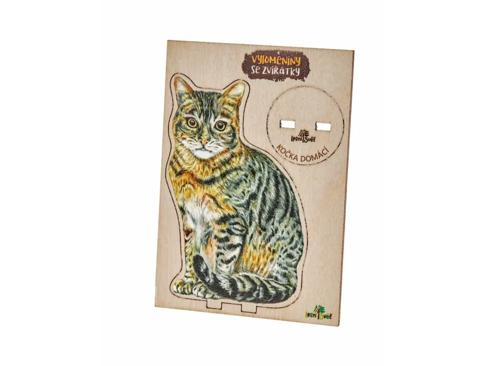 Dřevěná vylamovaná skládačka od českého výrobce Lesní svět s motivy zvířátek ze série Vylomeniny se zvířátky S - Kočka. Rozměry 10,5 x 7,5 cm. Vylomenina je vyrobena z kvalitní, ekologicky certifikované dřevotřísky. Potištěna stabilním UV tiskem. Kód výrobce: 50035-017.