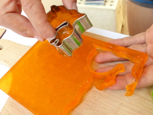 - Zbytky jednoho plátu nakrájejte na malé kostičky, nasypte je do silikonové formy na muffin a zalijte rozpuštěnou hmotou ze zbytků druhého plátu. Vznikne zajímavá mozaika.