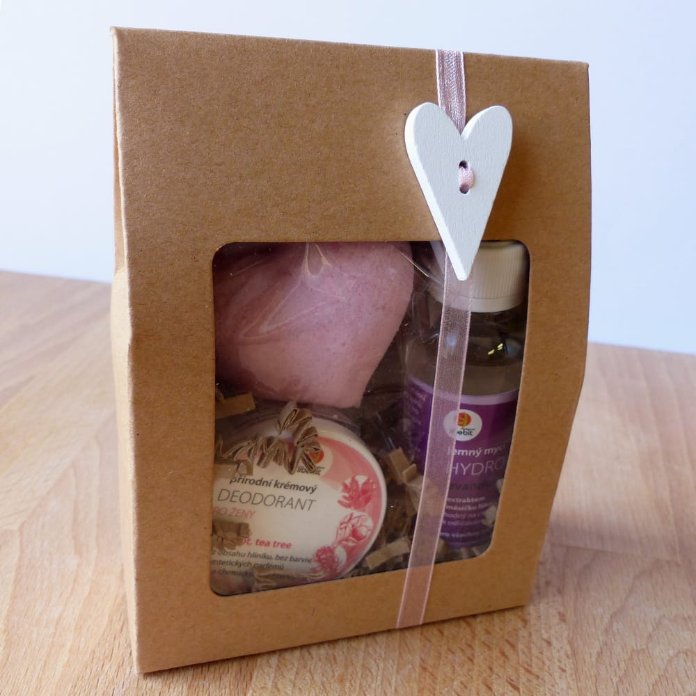 Dárkový balíček přírodní kosmetiky pro ženy s vůní levandule od českého výrobce libebit. Sada ručně vyrobené přírodní kosmetiky: přírodní deodorant pro ženy Levandule, hydrofilní olej Levandule, srdíčková šumivka do koupele Pro klidnou mysl. Cena za 1 balení.