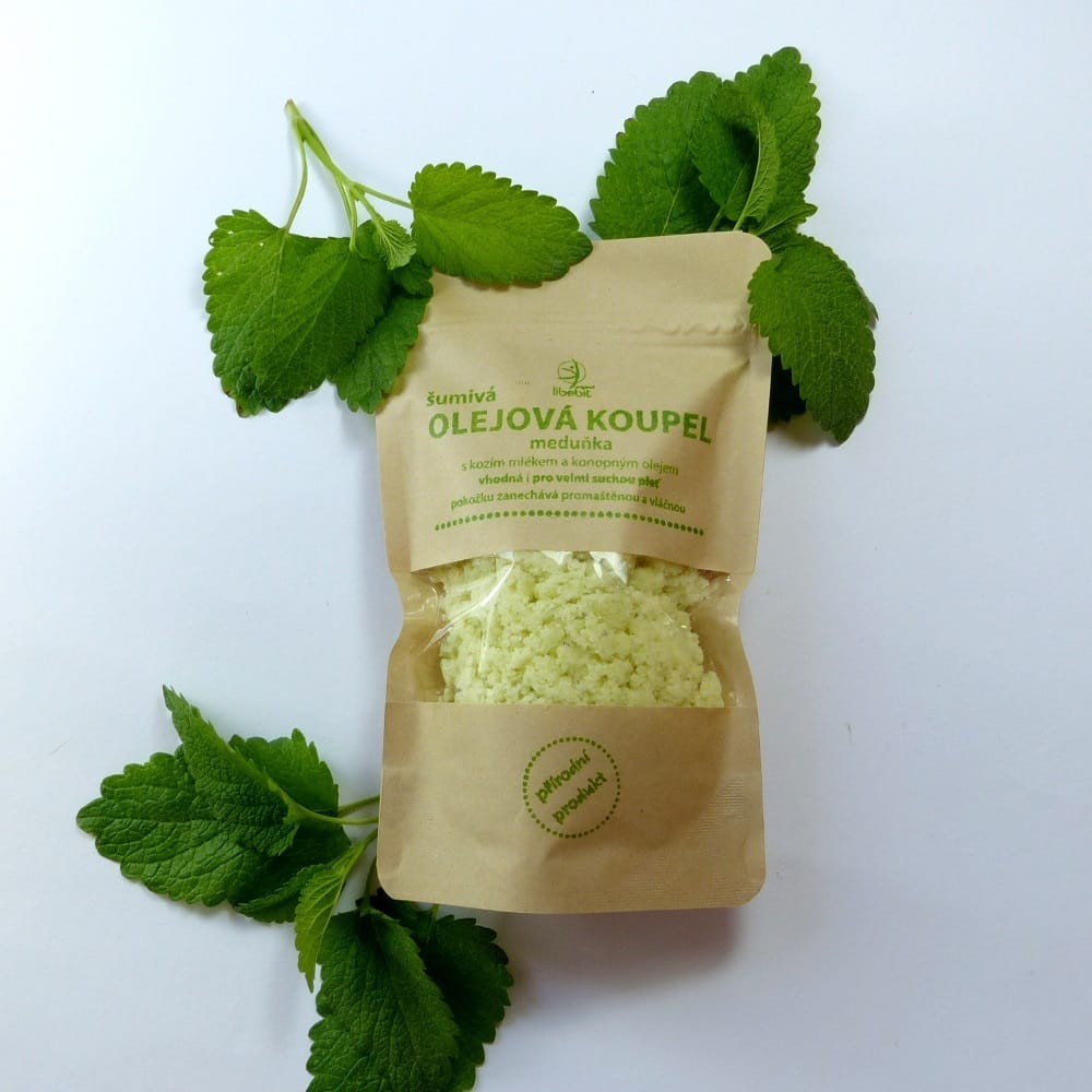 Šumivé bomby a koupele - Jemně šumivá olejová koupel s vůní meduňky 190g
