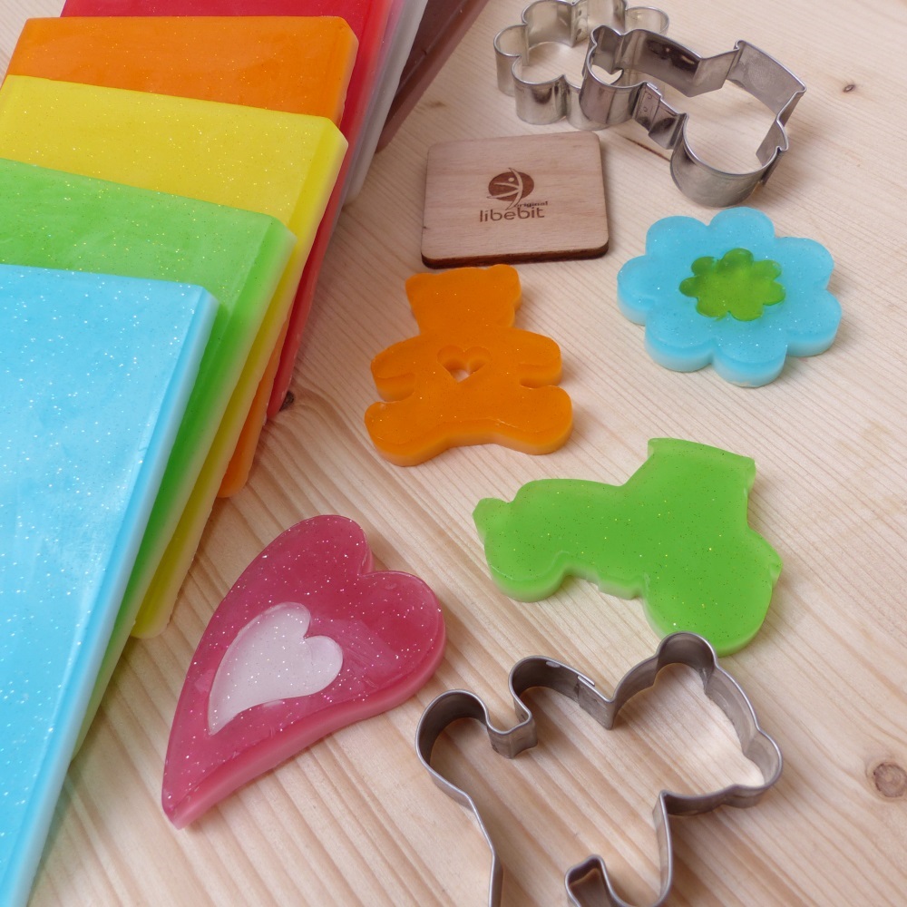 Glycerinové mýdlové pláty dvouvrstvé (čirá a mléčná vrstva) na vykrajování mýdélek pro děti - vyrobeno v ČR