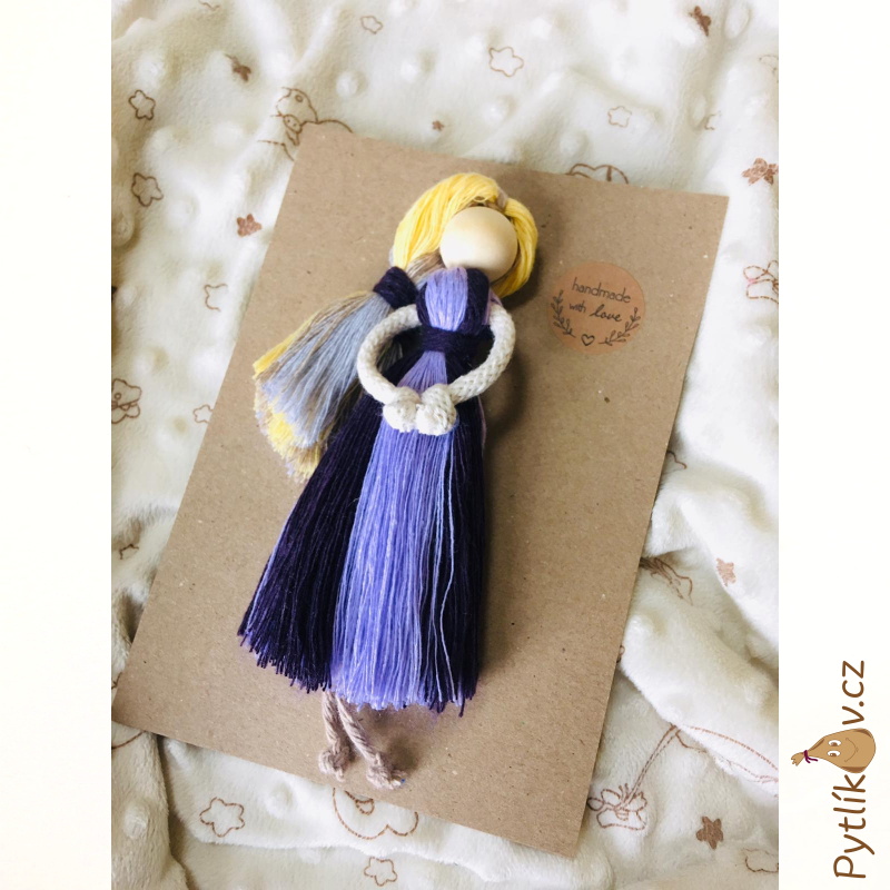 Panenka vyrobená z příze technikou macramé. Ruční výrobek malé české dílny.
