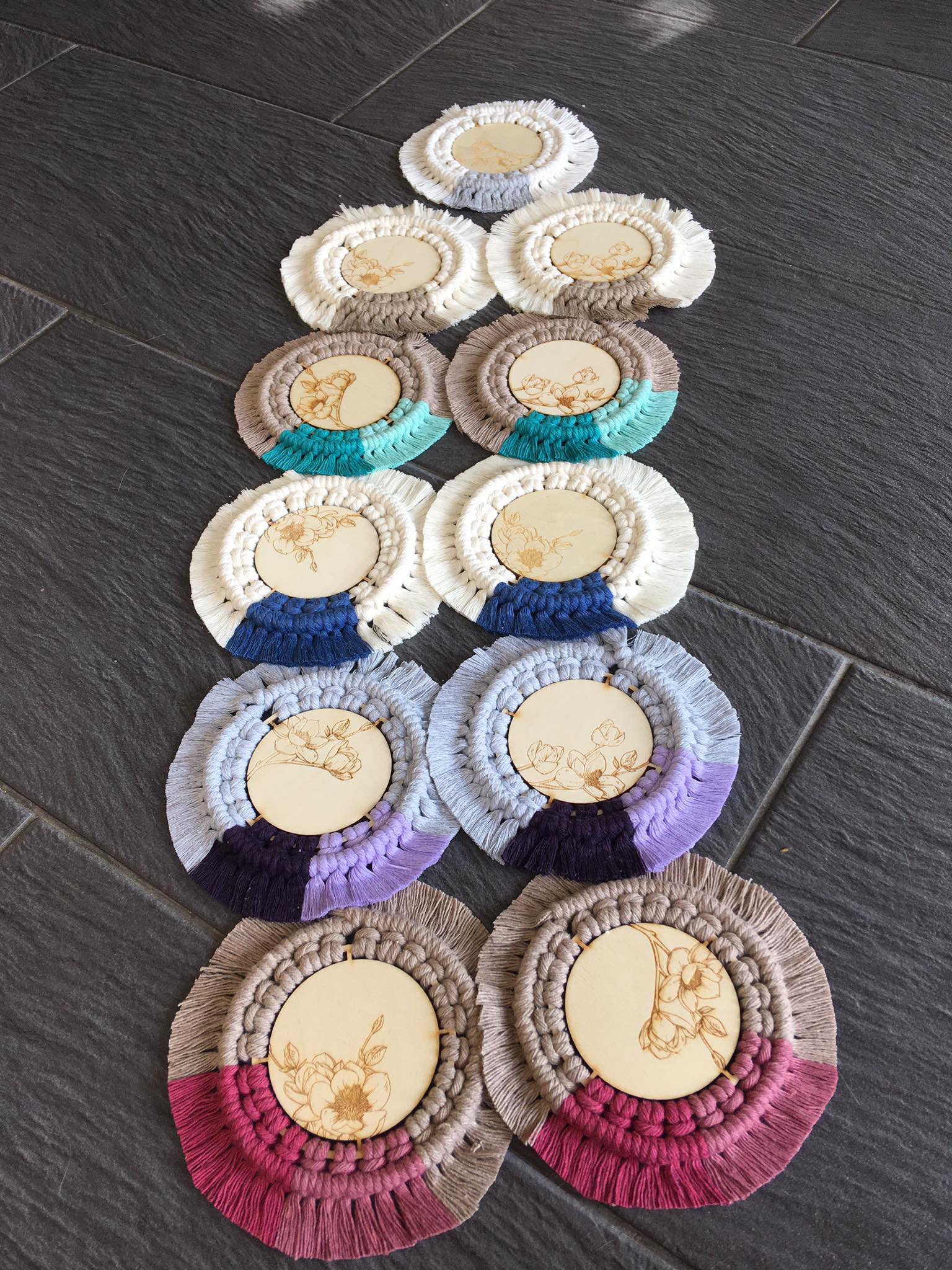 Macramé jako podtácek pod čaj, vázu, nebo misku, originální bytový doplněk a krásný dárek zejména pro ženy. Vyrobeno v ČR, malou dílnou výtvarnice Dominiky Flanderové.