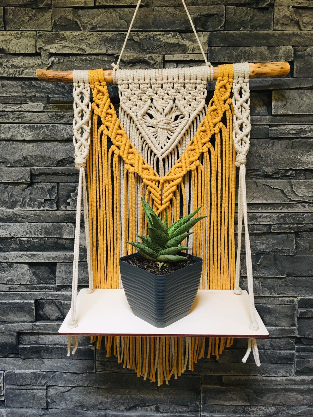 Macramé polička k dekoraci chodby, pokojů, umístění květiny či fotografií, atd. Vyrobeno v ČR, malou dílnou výtvarnice Dominiky Flanderové.