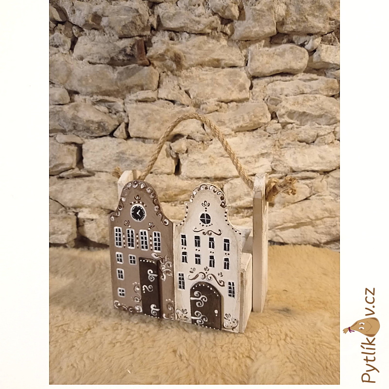 Originální dřevěná dekorace truhlík s uchy s motivem domečků. Originál od "Veroniky". Nádherný dřevěný truhlík je dodávaný ve třech velikostech, které je možné kombinovat a vytvořit si jedinečné zátiší. Truhlíky jsou nejprodávanějším produktem od "Veroniky". Bytový doplněk ze dřeva od českého výrobce.