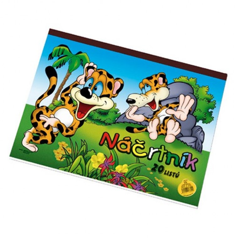 Tvrdý papír na kreslení a malování tužkami, pastely nebo tužkou. Náčrtník A4, 40 listů, plošná hmotnost 180g/m2. Lepený blok, barevný přebal (různé motivy). Katalogové číslo: 3152.
