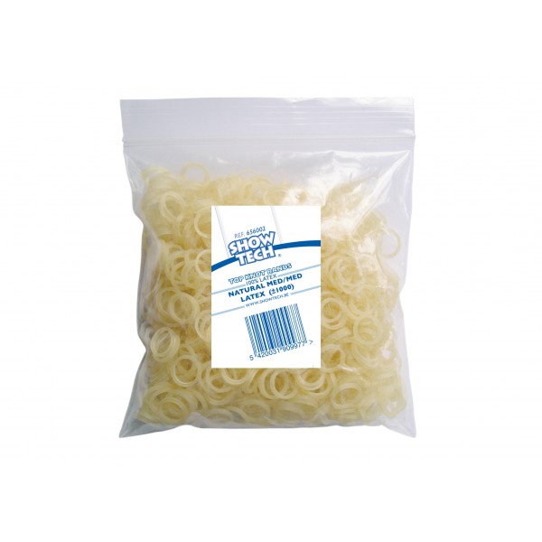 Pevné latexové gumičky na vyvazování top knotu.Velká odolnost i v naolejované srsti. 1000 ks, diam. 8 mm. barvy - černá, bílá, růžová, červená, neutrální Kód: 65STE087