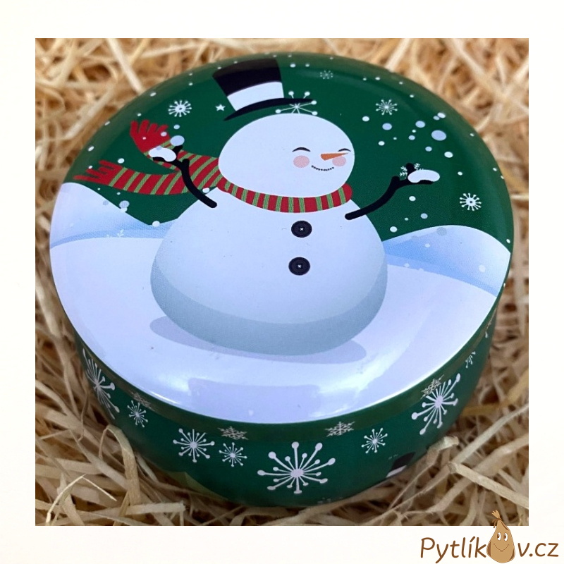 Přírodní ručně litá svíčka ze sojového vosku v kovové dózičce s dřevěným knotem ve vánočním designu. Originální dárek na vánoční večírek, nebo pod stromeček. Svíčka s vůní vanilka. Ručně vyráběná svíčka obsahuje pouze kompozice esenciálních a syntetických olejů a sójový vosk nejvyšší kvality. Vyrobeno v České republice.