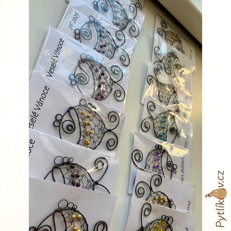 Originální drátovaná ozdoba na stromeček, vhodná jako dárek, od českého výrobce Drátování Blanka. Nádherná, drátovaná dekorace na stromeček nebo do bytu s motivem vánočního kapra. Ručně vyrobená dekorace.